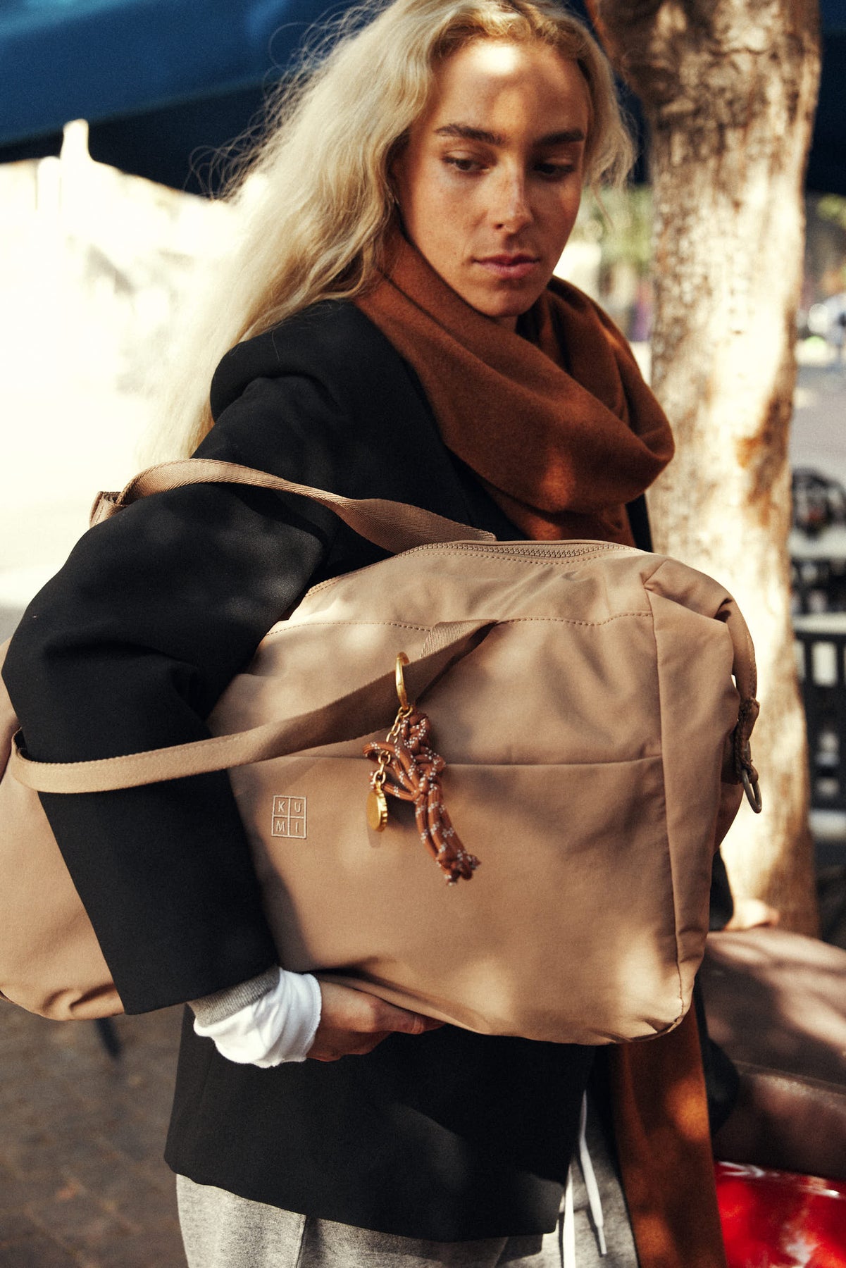 כפתורים צדדים מאפשרים להרחיב את התיק כשהוא מלא. רצועות נסיעה צדדיות + רצועה נוספת נפרדת לנשיאה על הכתף.